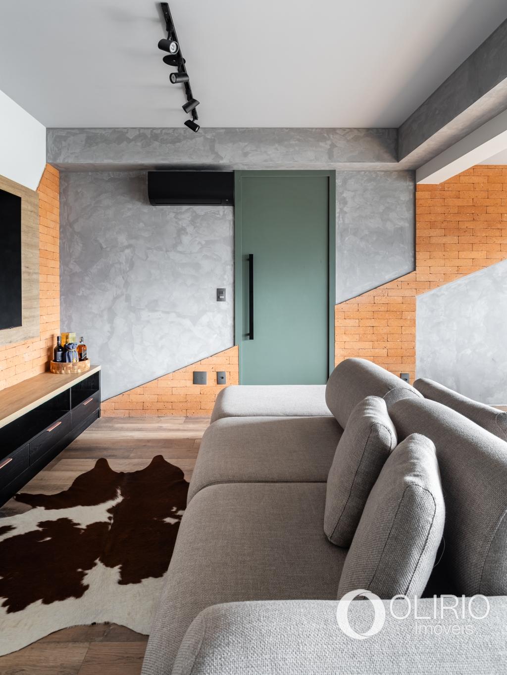 Sala ampla e iluminada, com varanda integrada